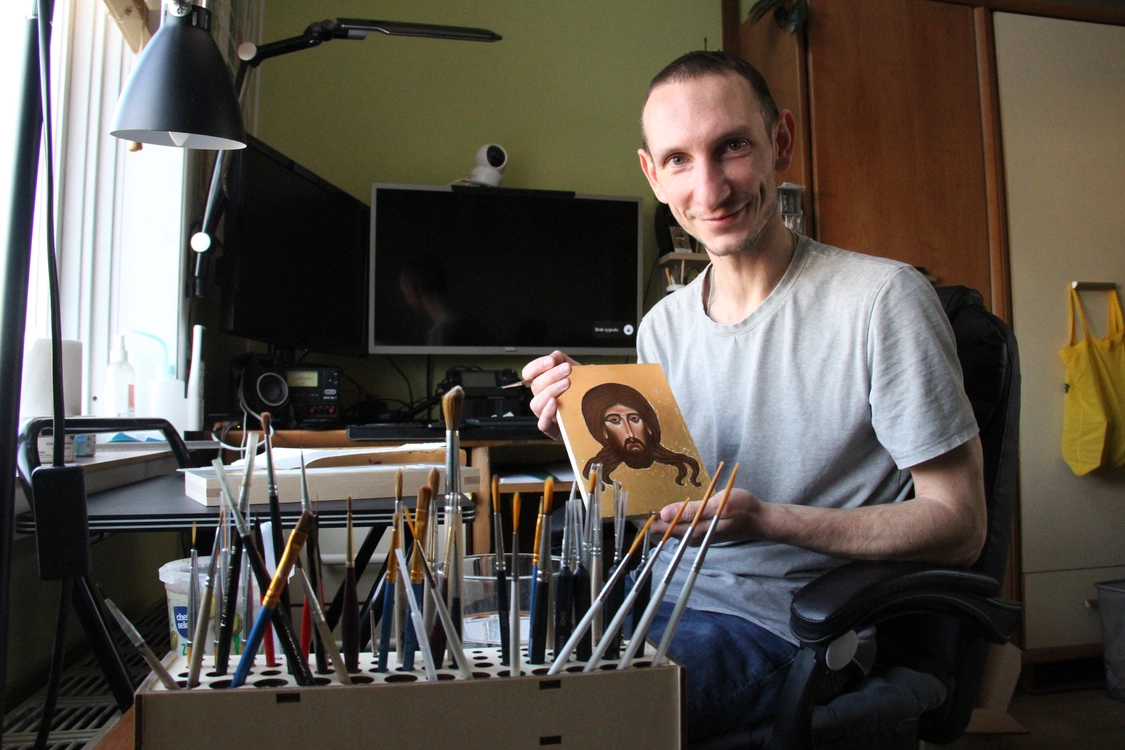 ZDJĘCIA: Michał Dajek z parafii pw. św. Jana Apostoła na Zakrzowie zachorował na stwardnienie rozsiane. Nie poddaje się nieuleczalnej chorobie, a do jego życia wróciła pasja pisania ikon. Zobacz jego prace.